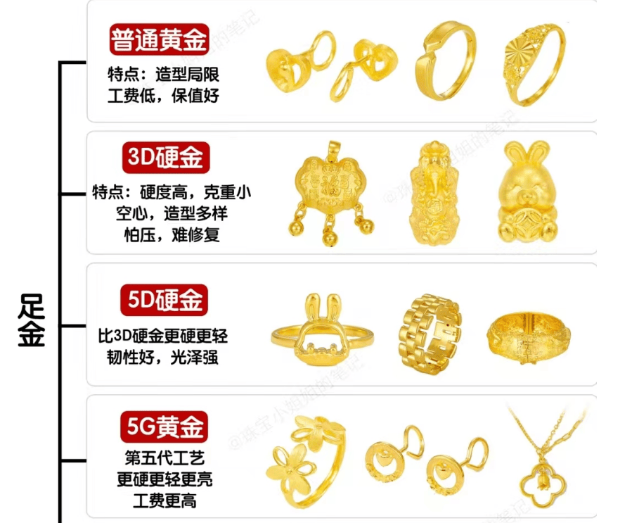 過去,一提到黃金,所有人想到的都是18K金、24K金,但現在黃金行業又出現了許多陌生詞彙:5G黃金、3D硬金、古法黃金、琺琅金……