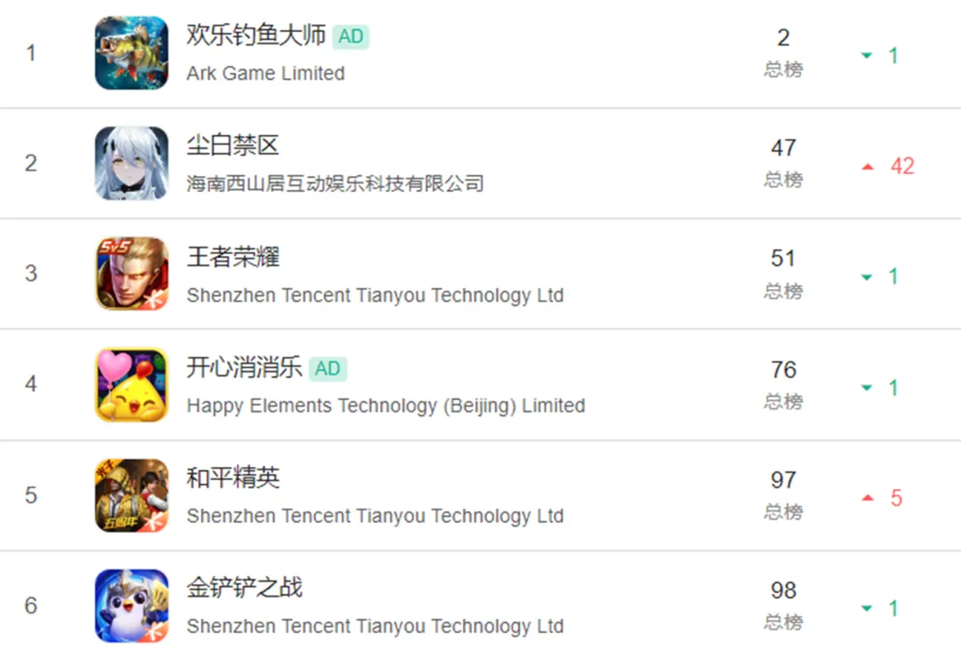 讓人沒想到的是,在種種節奏下,西山居的《塵白禁區》(下稱塵白)卻佔領了輿論高地。反映在數據上,《塵白》近期的表現幾乎可以與開服時相媲美。四月開始就在免費榜上一路高歌猛進,五月初更是挺近TOP2,這是什麼概念,看看它旁邊是哪些遊戲就知道了。