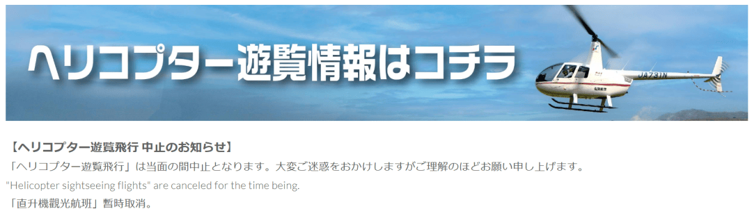 目前,在阿蘇德利動物園的官網上已經暫停了直升機的遊覽業務。