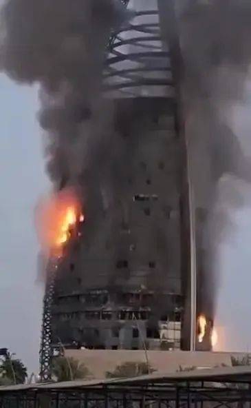去年9月17日,在衝突雙方的新一輪交戰之後,18層樓高的大尼羅石油作業公司大樓被大火籠罩,升起濃重的黑煙。