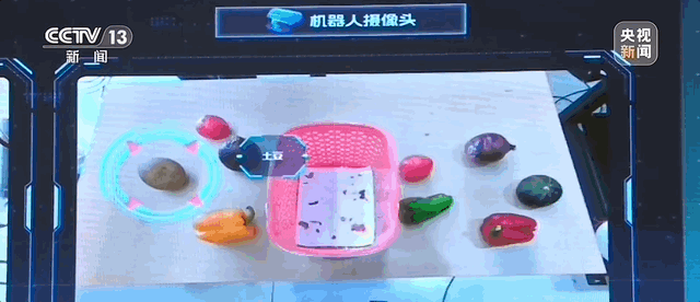 這是中國科學院自動化研究所設計研發的Q系列人形機器人,當你對它説從桌子上拿起一個澱粉含量最高的蔬菜,它能準確地從眾多蔬菜中挑選出土豆放進筐子。