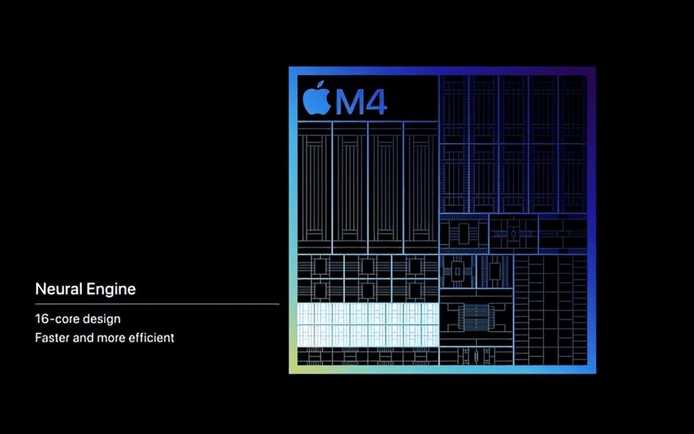比較令人驚訝的,蘋果從M2直接跳到了M4——這是一枚連MacBook都尚未搭載的芯片,其CPU比M2快50%,GPU比M2強4倍。