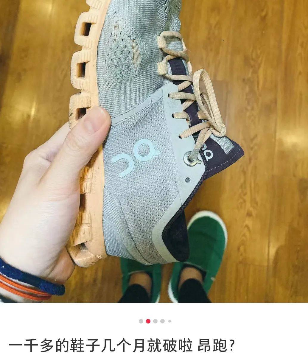 一位昂跑的買家説:“昂跑的鞋子很輕,但也很容易折斷。例如,鞋跟的內襯會很快撕裂,鞋面也很容易破。”