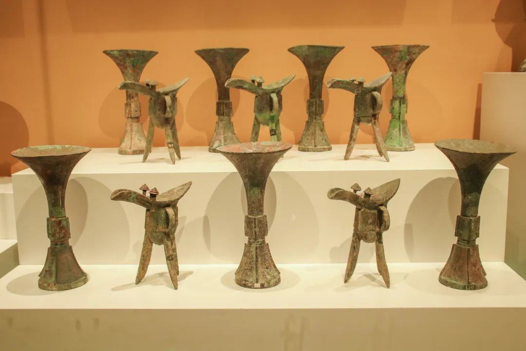 除了這尊大方鼎,博物館還展示了婦好墓出土的數十套銅觚、銅爵,以及大量青銅兵器。説明她不僅是一位高級祭司,也是一位戰功赫赫的女將軍。