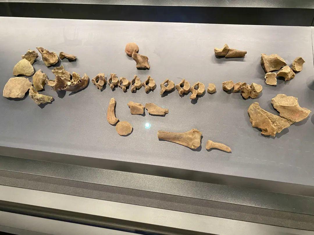 亞長的骨骸也得到了展示。骨骸出土時僅存部分顱骨、四肢骨。根據骨骼特徵判斷,這是一名身高約170釐米、年齡35歲左右的中年男性,骨骼上有七處創傷,是致死的主因。