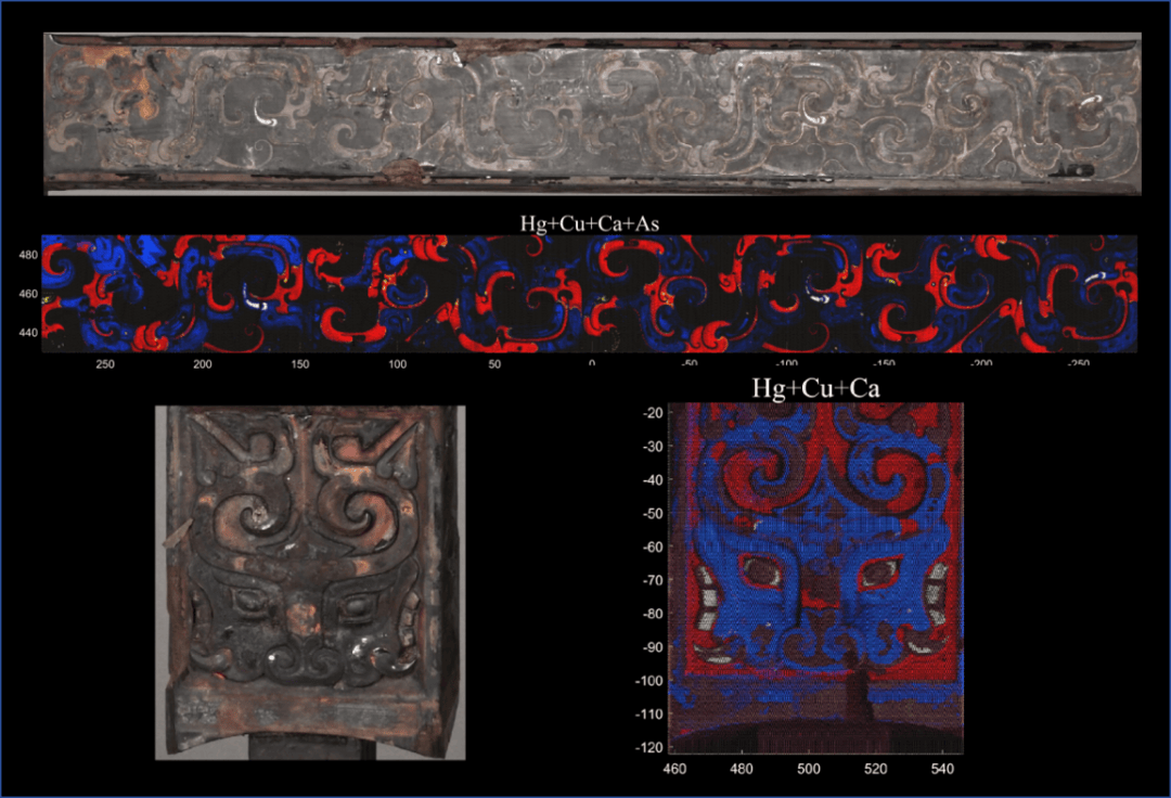 槨室考古發掘有序推進。北、西部四個側室(分別編號北一、二室、西一、二室)發掘完畢,東一室、南二室發掘工作正在進行中,提取各類文物3000多件(組),以及大量動植物遺存。北一、二室被盜擾嚴重,仍然提取出600餘件(組)器物,多數為琴瑟等絃樂器,出土的編鐘架橫樑保存完整,上有懸孔14處,與追繳的青銅編鐘數量吻合。南一、二室出土漆盒、耳杯、盤、豆、鼓,玉璧、璜、佩以及大量銅箭矢。西一、二室遺物以漆木俑為主,還發現木車、樂器和少量遣策類竹簡。木俑有200多個個體,分立姿、坐姿等不同姿態,部分木俑佩木劍。東一室以青銅器為主,目前已提取青銅器150多件(組),器類有鼎、簋、簠、敦、鈁、壺、甗、豆、鑑、釜、盤、尊缶等,青銅禮器組合保存完整;與青銅器同出的還有百餘件案、俎、盒、榻等漆木質飲食宴享起居用具。