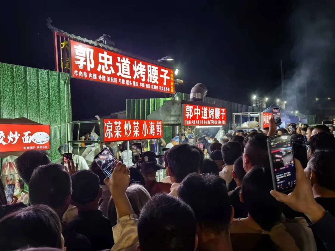 燒烤攤前擠滿主播。圖/九派新聞 馬婕盈