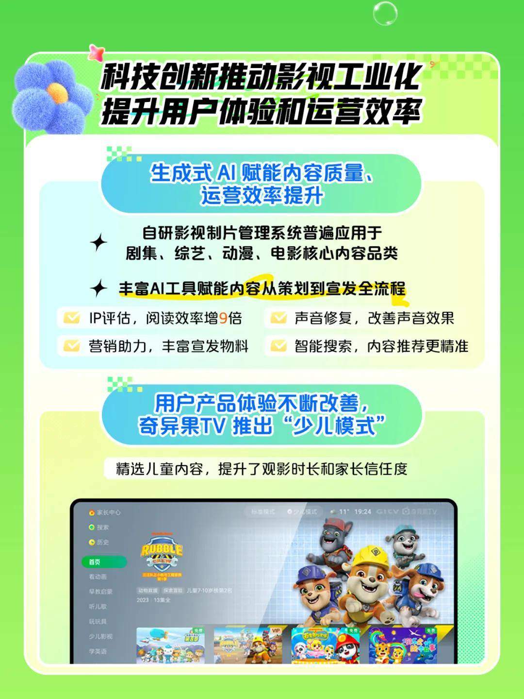 落實到行動上,愛奇藝在劇集、綜藝、動漫和電影等多品類內容製作中,已廣泛採用自研的影視製片管理系統,該系統通過集成生成式AI技術,提升了從內容策劃至營銷宣發的各環節效率與創造力。