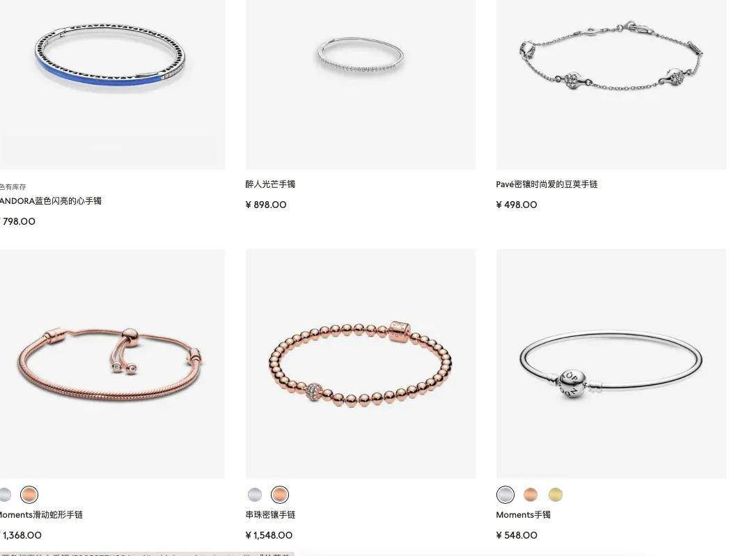 根據潘多拉產品價格顯示,單個銀質串飾的售價在300-600元,配齊一個手串的價格在3000-5000元不等。