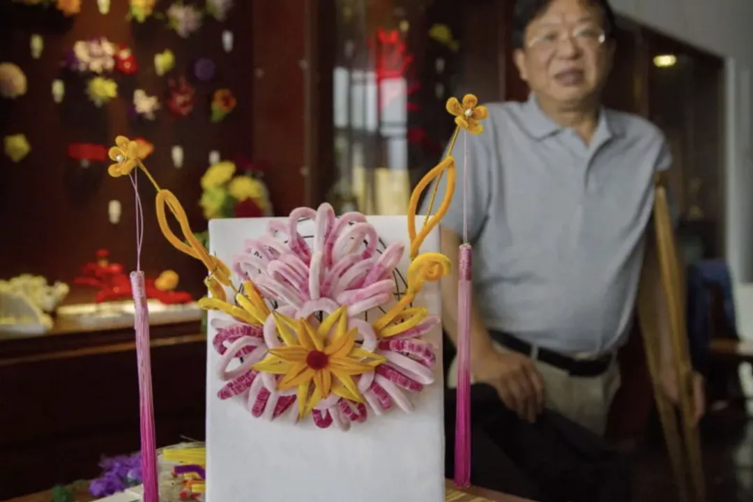 2006年,“南京絨花”被列為江蘇省非物質文化遺產,而此時的絨花手藝已陷入絕境,趙樹憲竟成了“最後的絨花匠人”。
