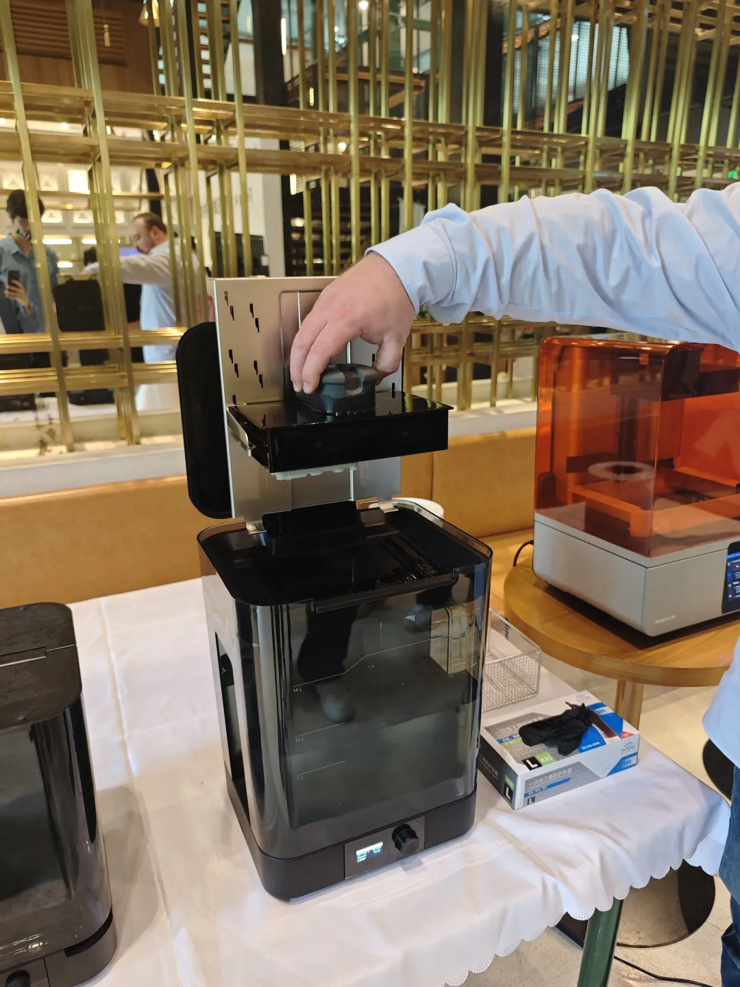 打印件清洗設備也進行了升級,Form Wash+ 將體積增加了67%,攪拌次數提高3倍。首席產品官Dávid,現場演示了 Form 4 的工作流程,其打印過程確實快了很多。