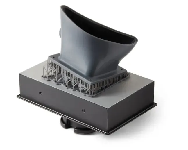 大型氣流測試噴嘴是使用灰色樹脂V5(Grey Resin V5 )在 Form 4 上打印而成,僅耗時 2 小時 56 分鐘,而使用 Form 3+ 打印則需要近 9 小時。