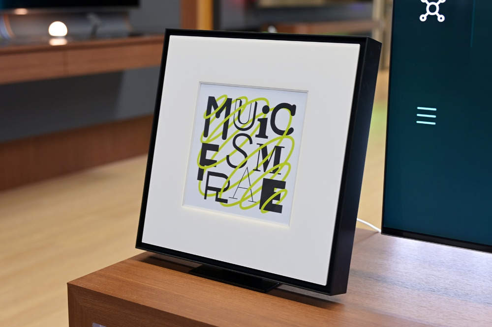 與The Frame畫壁藝術電視具有相同特徵的還有今年新上市的Music Frame畫壁藝術音響。Music Frame畫壁藝術音響將聲音與畫作結合,將之開啓,就像是美妙的音符縈繞在相框周圍,可謂是一款走在時尚前沿的藝術產品。