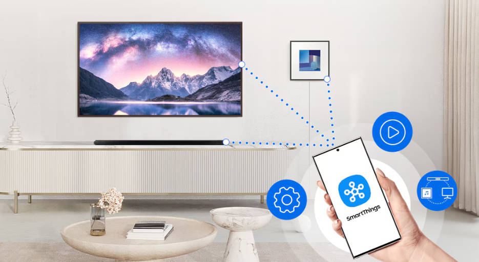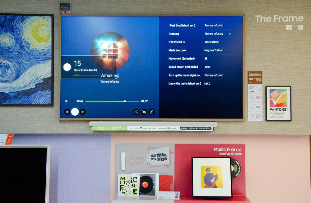 作為電視的優質伴侶,Music Frame足以擔當大部分情景下的聲音輸出。而針對於三星電視的用户,Music Frame還有更大的用武之地。將三星電視和Music Frame畫壁藝術音響連接在同一網絡環境下,即可通過Wi-Fi傳輸,開啓Q交響樂模式,帶來更震撼的環繞立體聲感受。