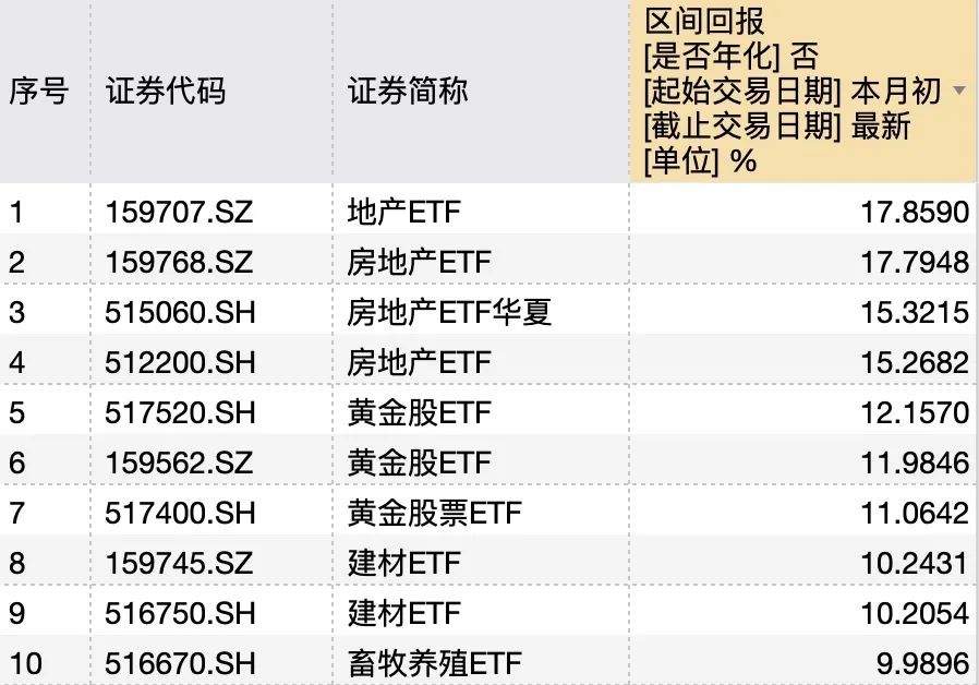 5月以來,地產、養殖及黃金ETF喜提收益排頭兵。