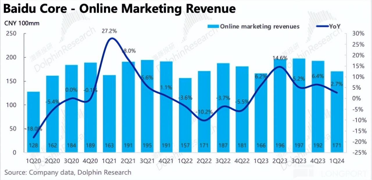 可能目前對於百度而言,無人車只是方向,搜索才是歸宿。一季度公司營收315億,同比微增1%;