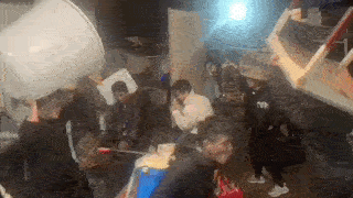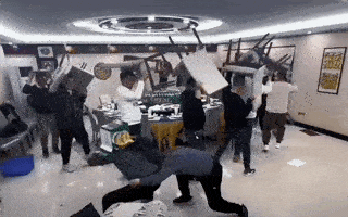 “我是個賣配件的,看到兩個人就抬起挖掘機挖鬥和工程車輛輪胎,當場就沉默了,那麼大的棍子都彎了。”