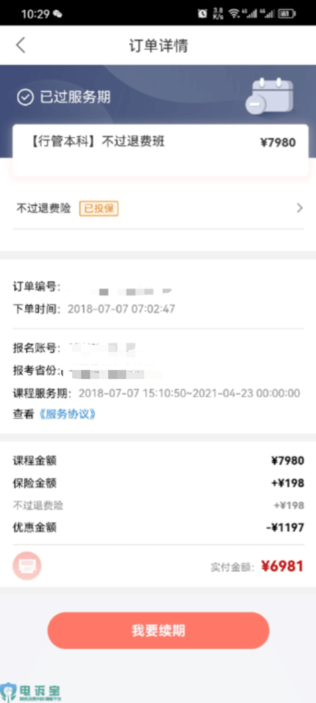 3月15日,浙江省的葉先生向“電訴寶”投訴稱其於2020年12月24日通過網絡平台下單,支付了44800元購買了尚德機構提供的教育學原理碩士學位研修班服務。根據雙方的約定,該服務應包含對接碩士學位的學校和兩門聯考課程的網絡輔導。然而,在尚德機構的服務過程中,未能提供他所錄取學校的通知書或類似的憑證,這一事實也得到了尚德機構的承認。其次,尚德機構無法為他開具學習過程中的課程成績單,這讓他在證明自己的學習情況時遇到了困難。最後,葉先生髮現聯考科目的核心資料屬於VIP資料,需要額外付費才能獲得,這與他最初購買服務時的理解不符。