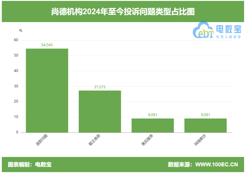 此外,國內知名網絡消費糾紛調解平台“電訴寶”受理用户維權案例顯示,尚德機構2024年至今還疑似存在退款問題、霸王退款、售後服務、網絡欺詐等問題。