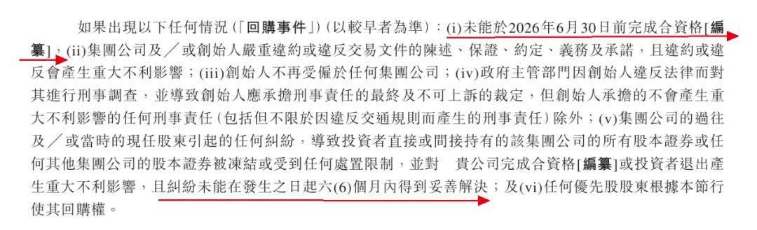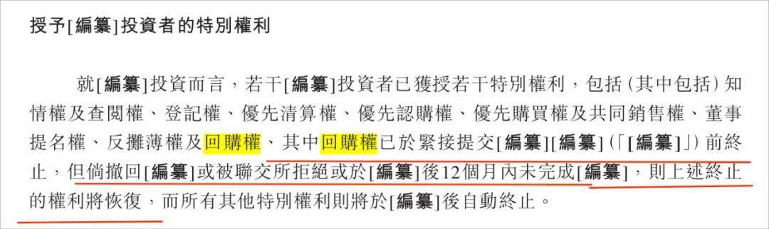 其中,回購權已於緊接提交招股書前終止,但倘撤回招股書或被香港聯交所拒絕或於遞交招股書後12個月內未完成上市,則上述終止的權利將恢復。
