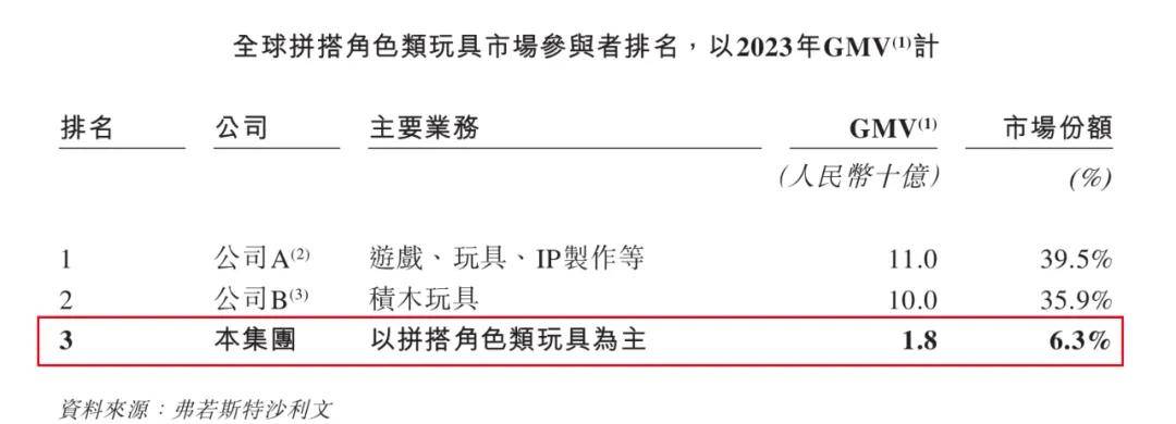 根據弗若斯特沙利文資料,布魯可是中國最大、全球第三的拼搭角色類玩具企業,在2023年實現GMV約18億元。