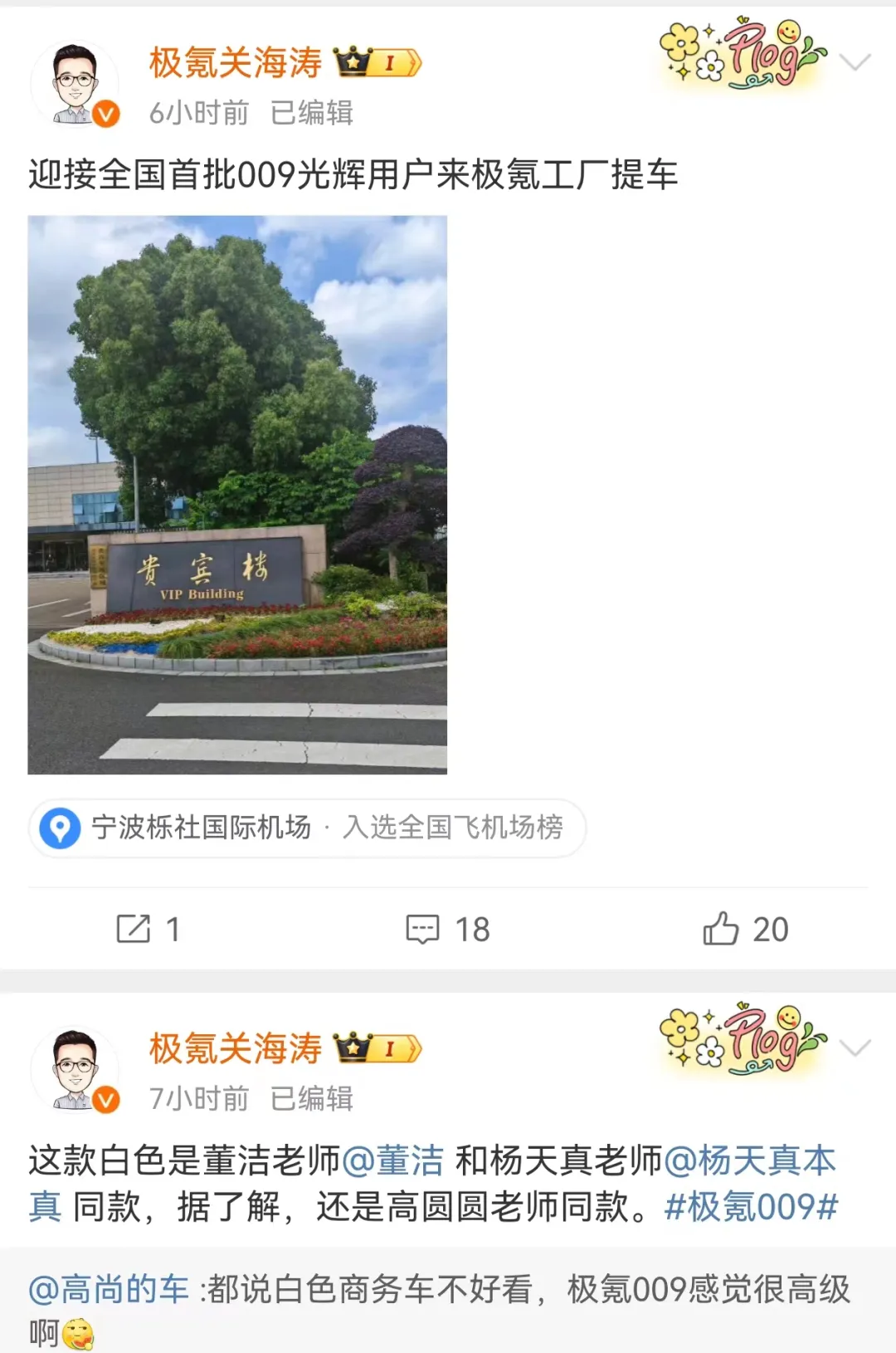 極氪CEO安聰慧沒有開微博,除了CMO作為發聲渠道,吉利副總裁楊學良也會經常被媒體看作官方發聲渠道,形成旗下品牌與集團高管聯合組合。