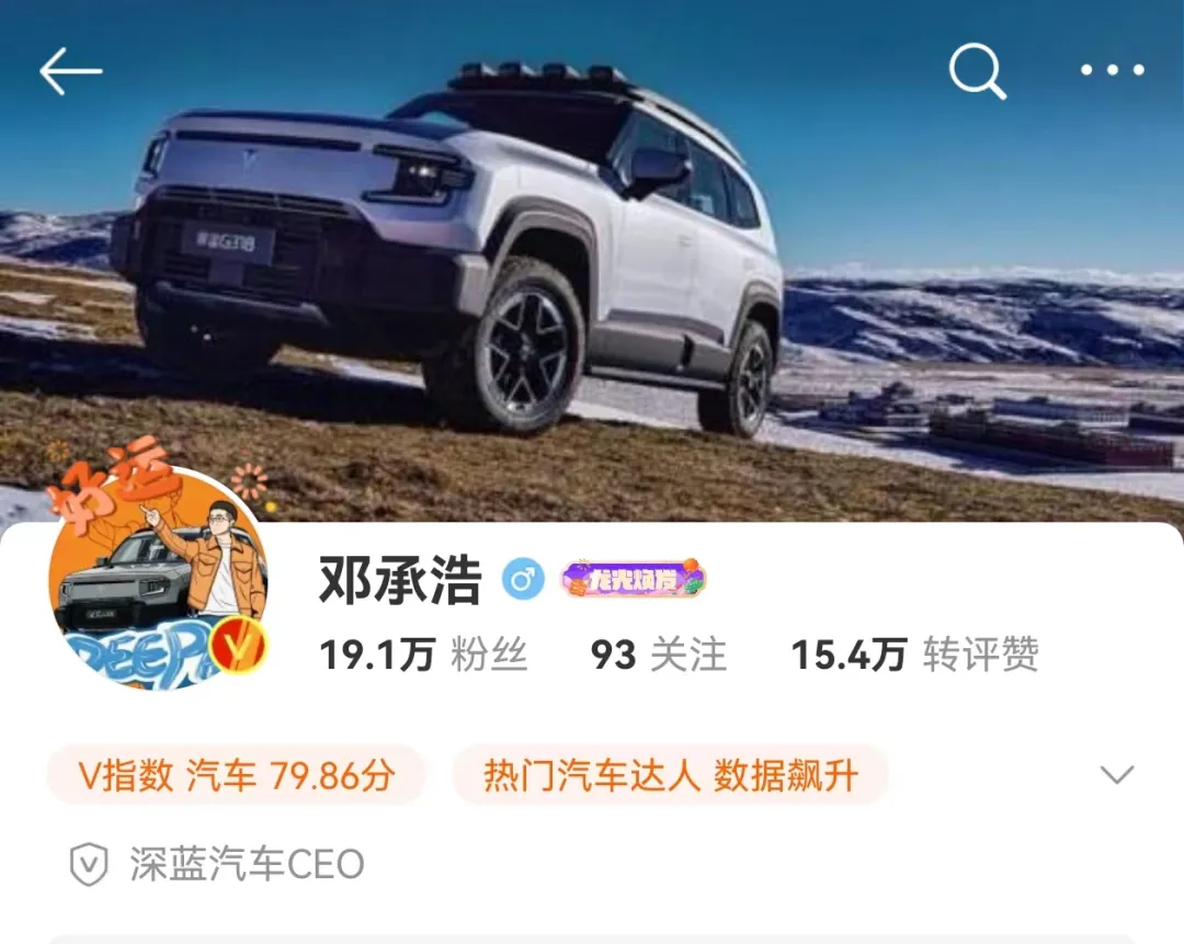 目前,深藍汽車CEO微博粉絲19.1萬,獲得15.4萬轉評贊;