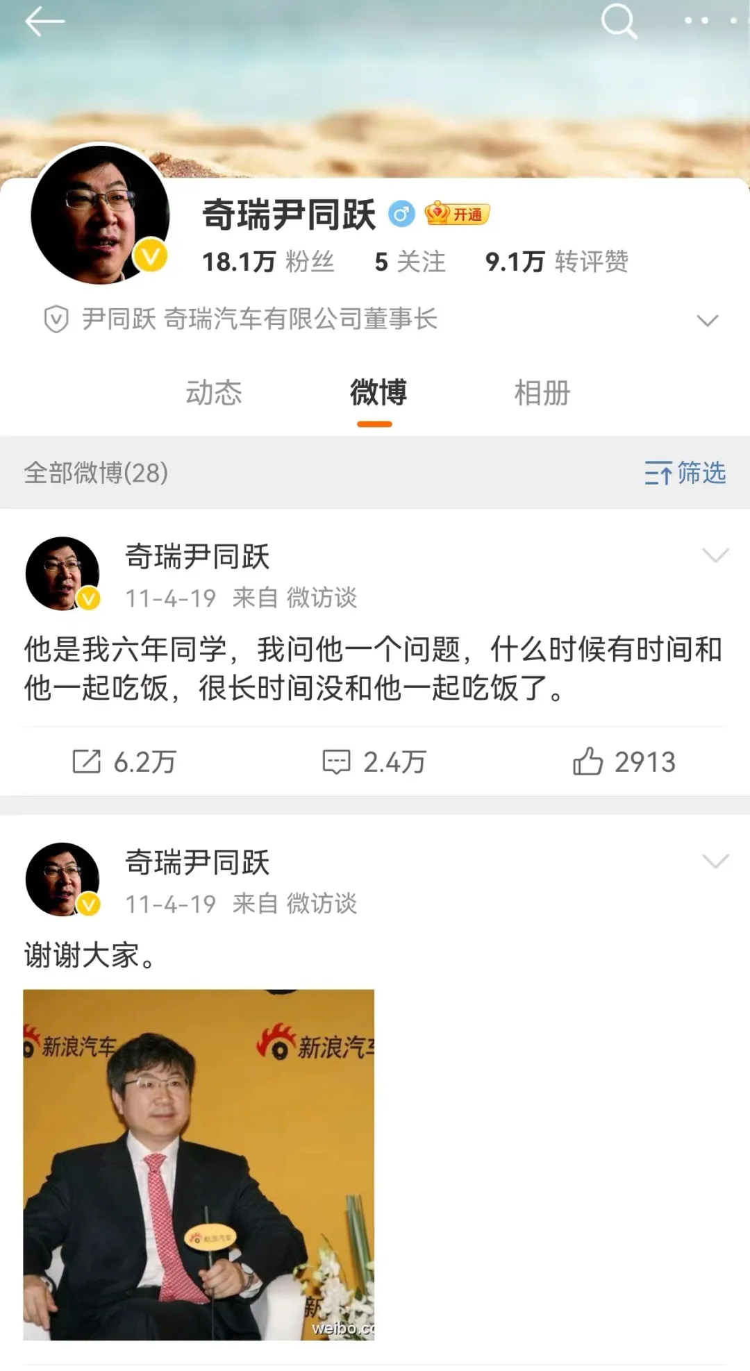 比如奇瑞汽車董事長尹同躍的個人微博2011年4月就停更了;