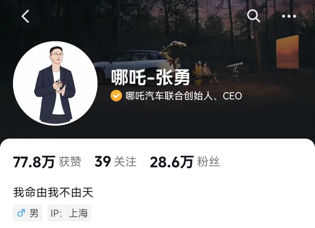 哪吒汽車CEO張勇的抖音粉絲28.6萬,獲贊77.4萬,共發佈作品85條。