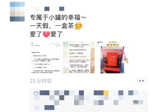 甚至還有員工玩起了花活兒,把假期留給自己,把茶葉送給朋友圈的好友。