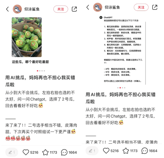 最新發布的GPT-4o更是被稱為現實版的斯嘉麗,多模態的輸入輸出能力和類人化的情感表達讓網友直呼,“她來了!”。不僅支持文、圖、音頻三種信息形態的輸入,並且可以做超過50種語言的同聲傳譯。甚而有網友給GPT-4o發了一張菜市場的西瓜圖片,讓GPT-4o幫着挑西瓜,據反饋,效果還不錯。