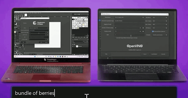 比如AI繪畫方面,高通、英特爾的最新PC芯片均已支持Stable Diffusion的本地運行,並且在生成速度上展開角逐。