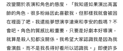 如果出演高富帥的角色,很多粉絲因此喜歡我,但那樣我就會被困在裏面了吧,我還能夢想演李滄東和李安的戲嗎?