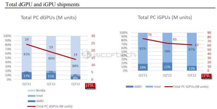 2. 在“芯片代表是CPU”、“CPU代表是英特爾”的時代,沒點知識不一定知道AMD和英偉達這兩家公司。所以英特爾是傲慢的,居高臨下的芯片之王。它在2000年代作出了不起眼實際很重大的決策,只做iGPU,也就是集成顯卡,和自家CPU一起賣,不做dGPU,也就是獨立顯卡,量不大沒意思。到現在英特爾還是賣GPU量最大的,比AMD和英偉達都多,基本是集成顯卡。