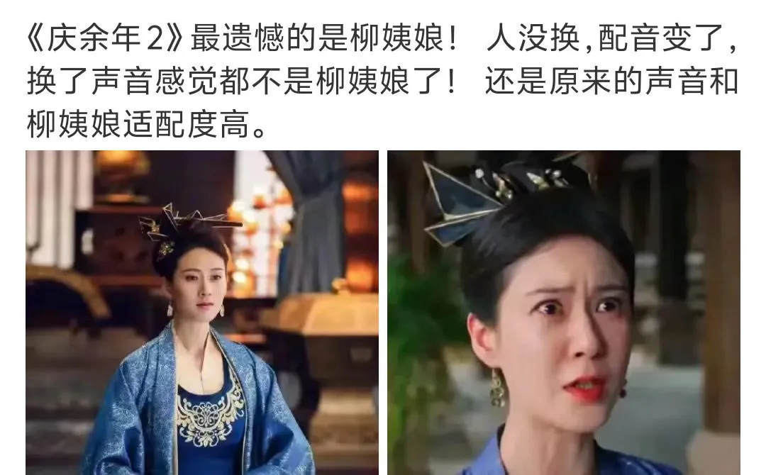 但是在第二季裏,柳姨娘的聲音卻有些粗獷,讓觀眾很跳戲。