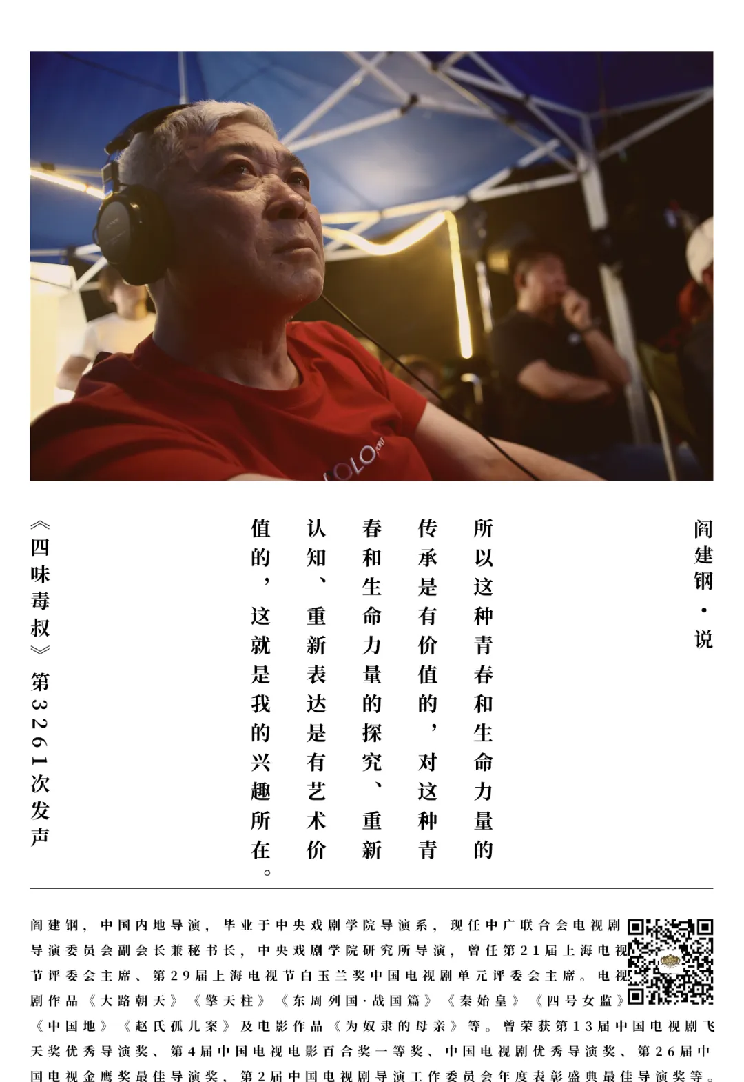 **閻建鋼:****我們不按歷史長河來看,而是按絕對值來看,這羣人就是年輕人。**當年的年輕人和當代的年輕人,他們的青春形態有沒有相似之處?有沒有不相似的地方?不相似在哪裏?這裏面有沒有一條精神的貫通?在形態上又有什麼樣的落差和區別?這是我感興趣的。