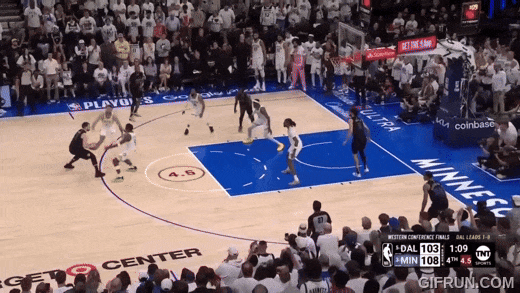 獨行俠的防守策略,依然是適時夾擊愛德華茲,請森林狼其他人持球解決。愛德華茲對夾擊後的傳球時機依然頭疼:傳早了,達拉斯來得及輪轉;傳晚了又不太對。今天他儘量在讀到達拉斯防守移動後再傳球,加上森林狼不沉迷遠射,積極找籃下,所以能維持殺傷力,一直領先。
