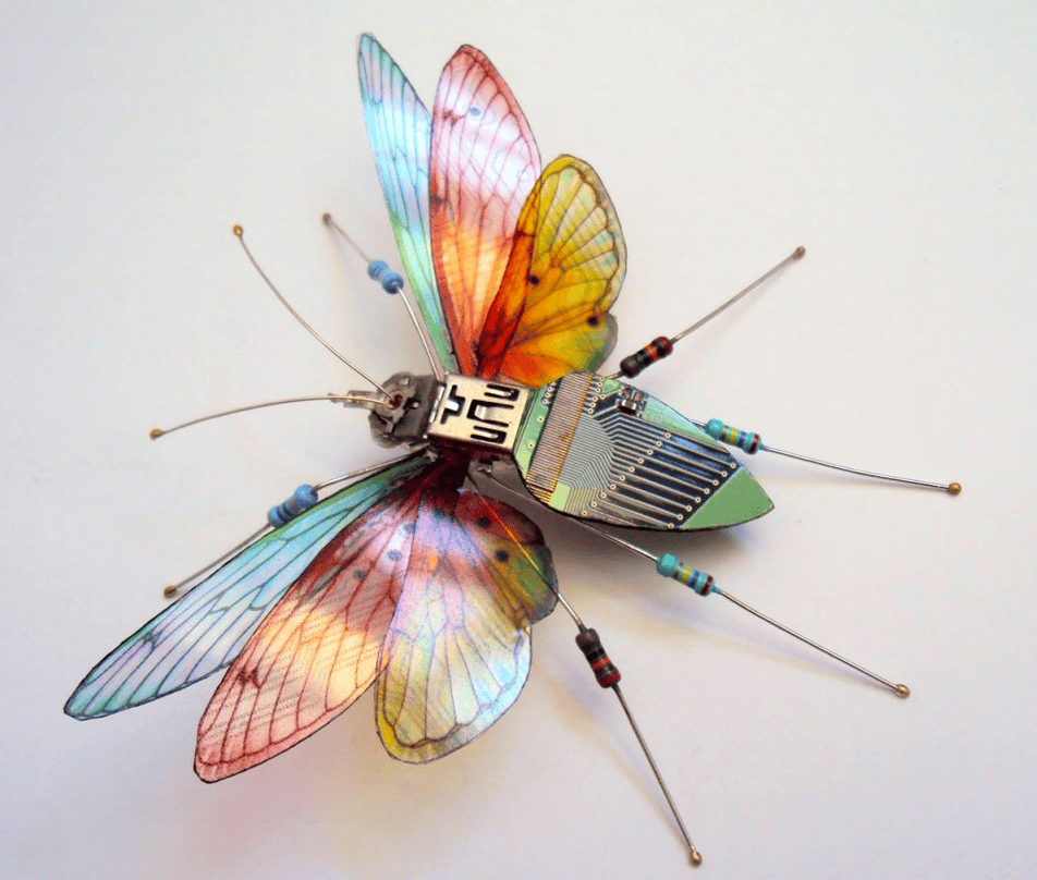 還有藝術家利用廢棄的電子元器件,做成了藝術作品。用電路板做成的電子昆蟲、電子城堡,用廢棄鍵盤做成的特洛伊木馬,用電子元器件做成的波斯地毯,還有一些大型的裝置藝術等。