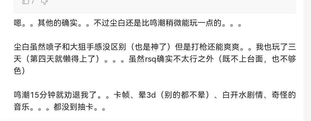 這次鳴潮上線半天就有米孝子坐不住了,趕緊説鳴潮不好,拿着天文望遠鏡尋找漏洞,然後雞蛋裏挑骨頭。當然我也不是説鳴潮有多好,庫洛這次做的不好,不然我就會被米孝子抓住破綻,説我是給庫洛洗地的水軍。但是甘雨的狗上來就在自媒體的評論區瘋狂輸出,生怕你米爹流量受挫,試圖掩蓋真相,那隻能説明我們已經接近事實了。
