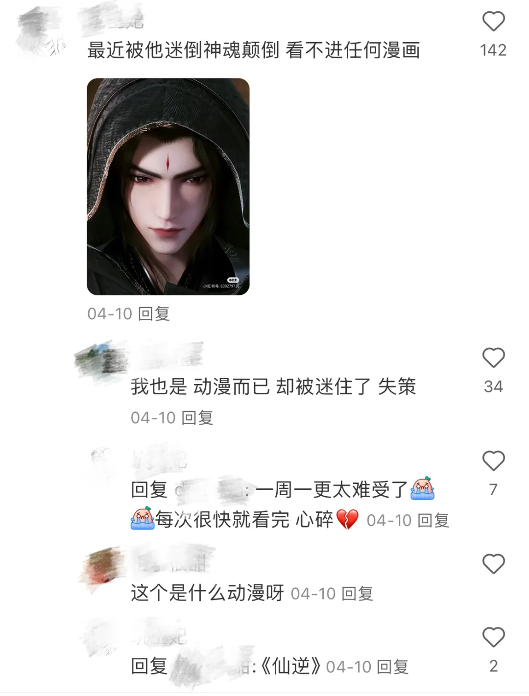 如此便有了開頭的一幕。《仙逆》的粉絲會第一時間為男主的每一個新造型提供海量反饋,優化意見具體到劉海的形狀、指甲的長短,也會直言劇情改編哪裏令人舒適、哪裏可能欠妥,甚至還會從宣發角度出謀劃策。這屆國漫粉真是既卷官方也卷自己,誓要將這個“雲監工”當出水平、當出風采。