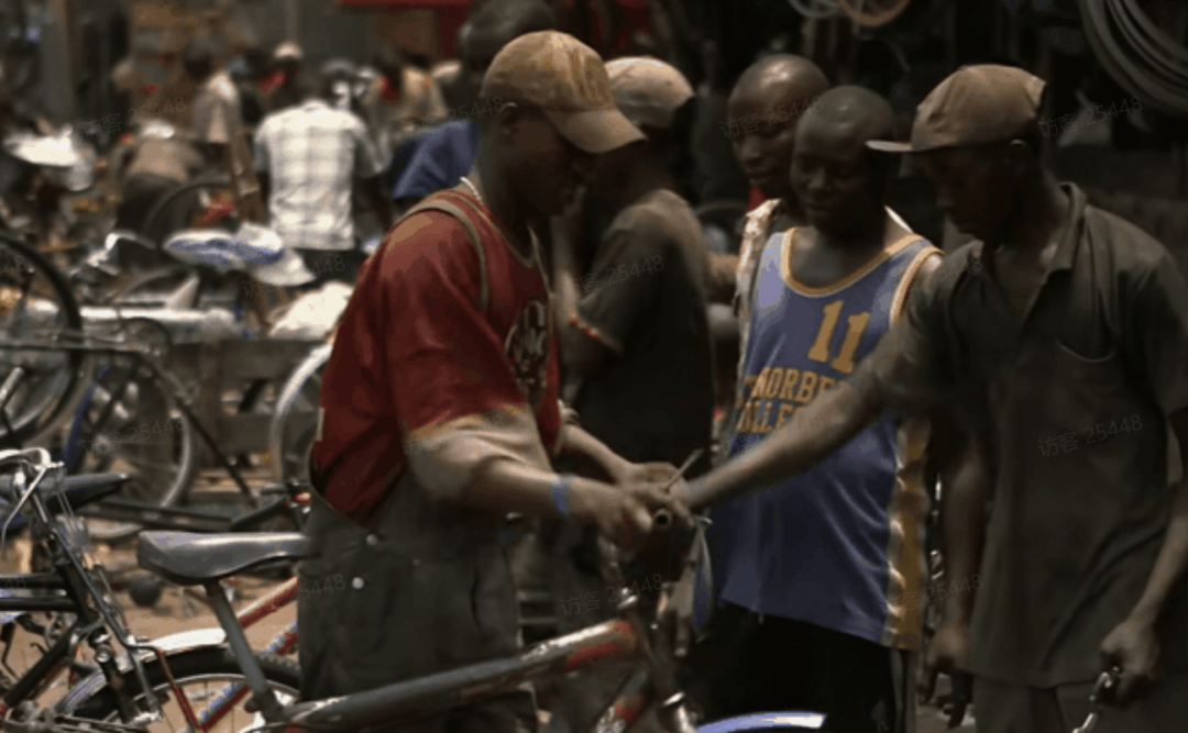 遍地都是中國淘汰來的自行車,在出售前商販會將其翻新加固