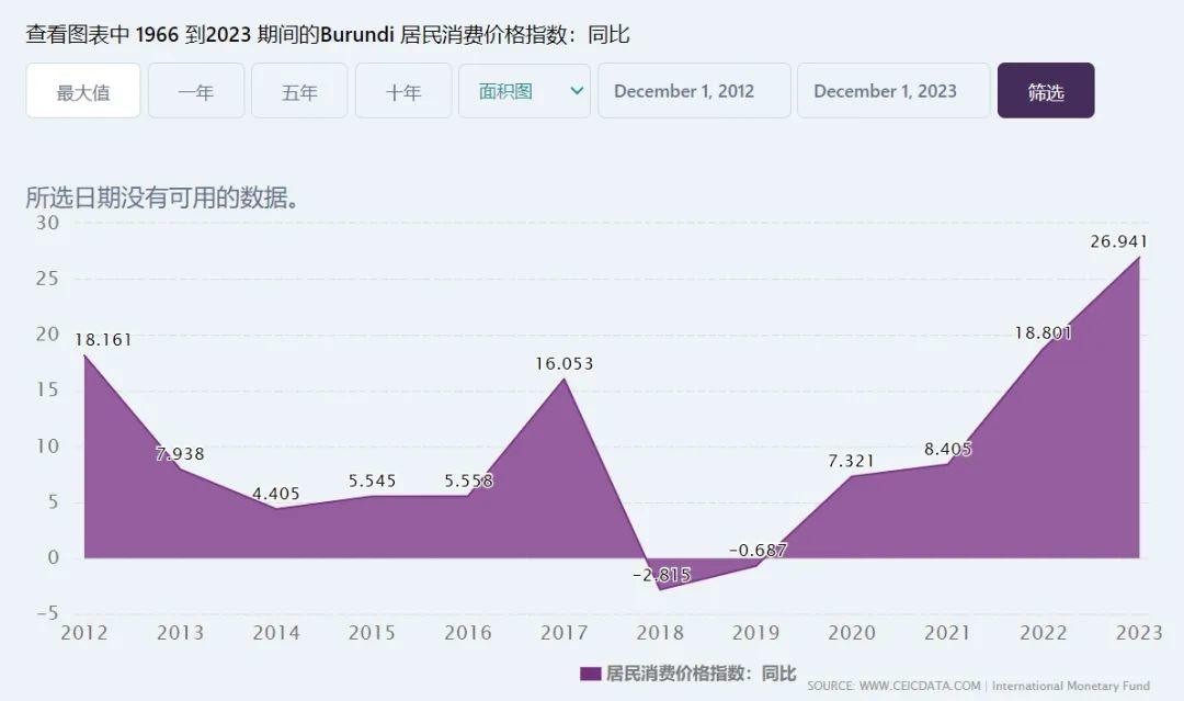 根據布隆迪統計與經濟研究院數據,國內通脹明顯增長,CPI指數更是連續四年攀升