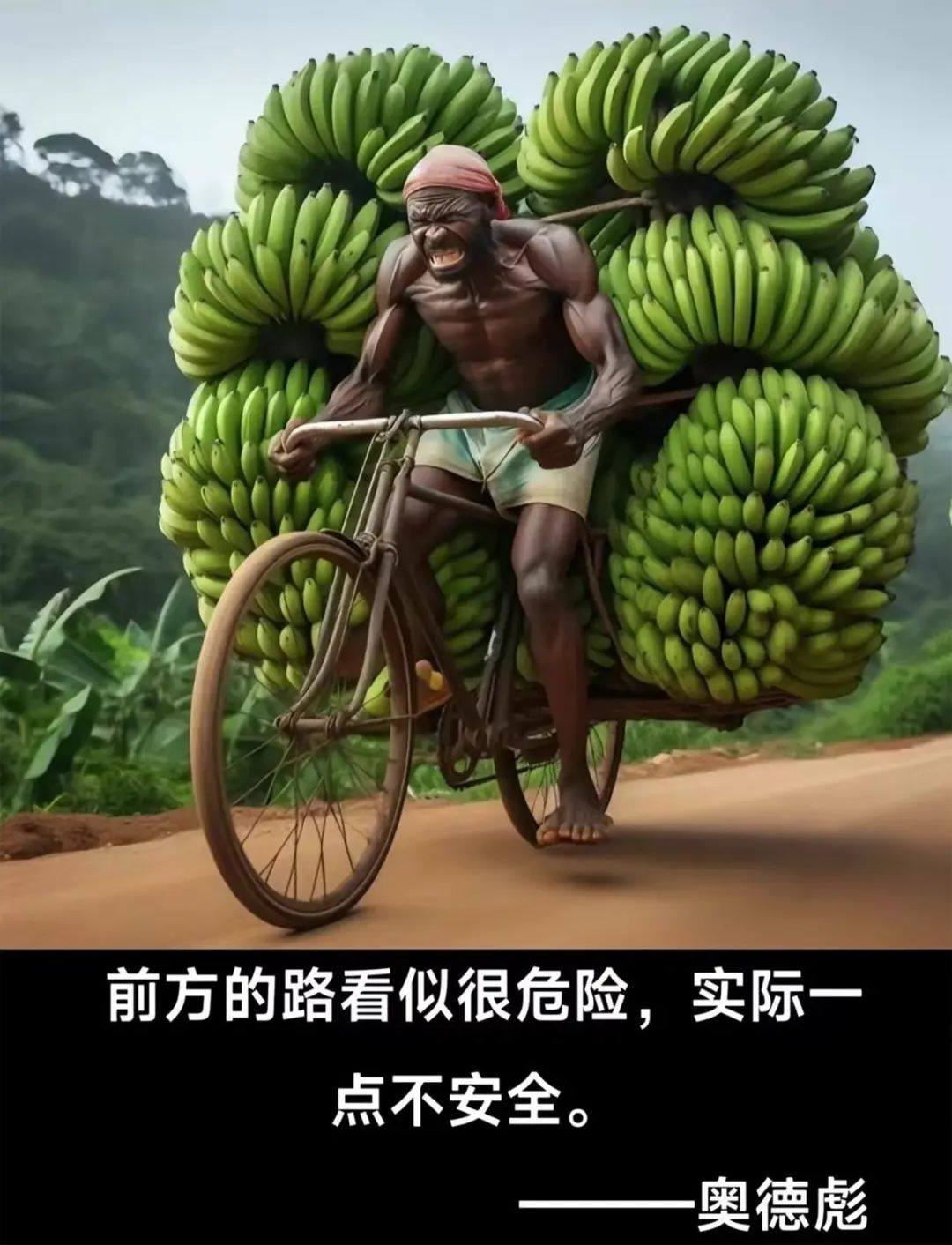 最核心的語錄內容直接取材於奧德彪們的工作日常,蹬着時速超過70km/h卻沒有剎車片的自行車,車上還掛着幾百斤的香蕉,在烈日下瘋狂地疾馳着。