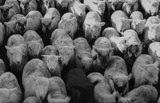 倉皇的羊羣與洶湧的人羣相疊,奔波向前,從容受苦。