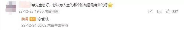 每年農曆新年前的12月底,蔡瀾都會開放微博評論,直接和網友交流。