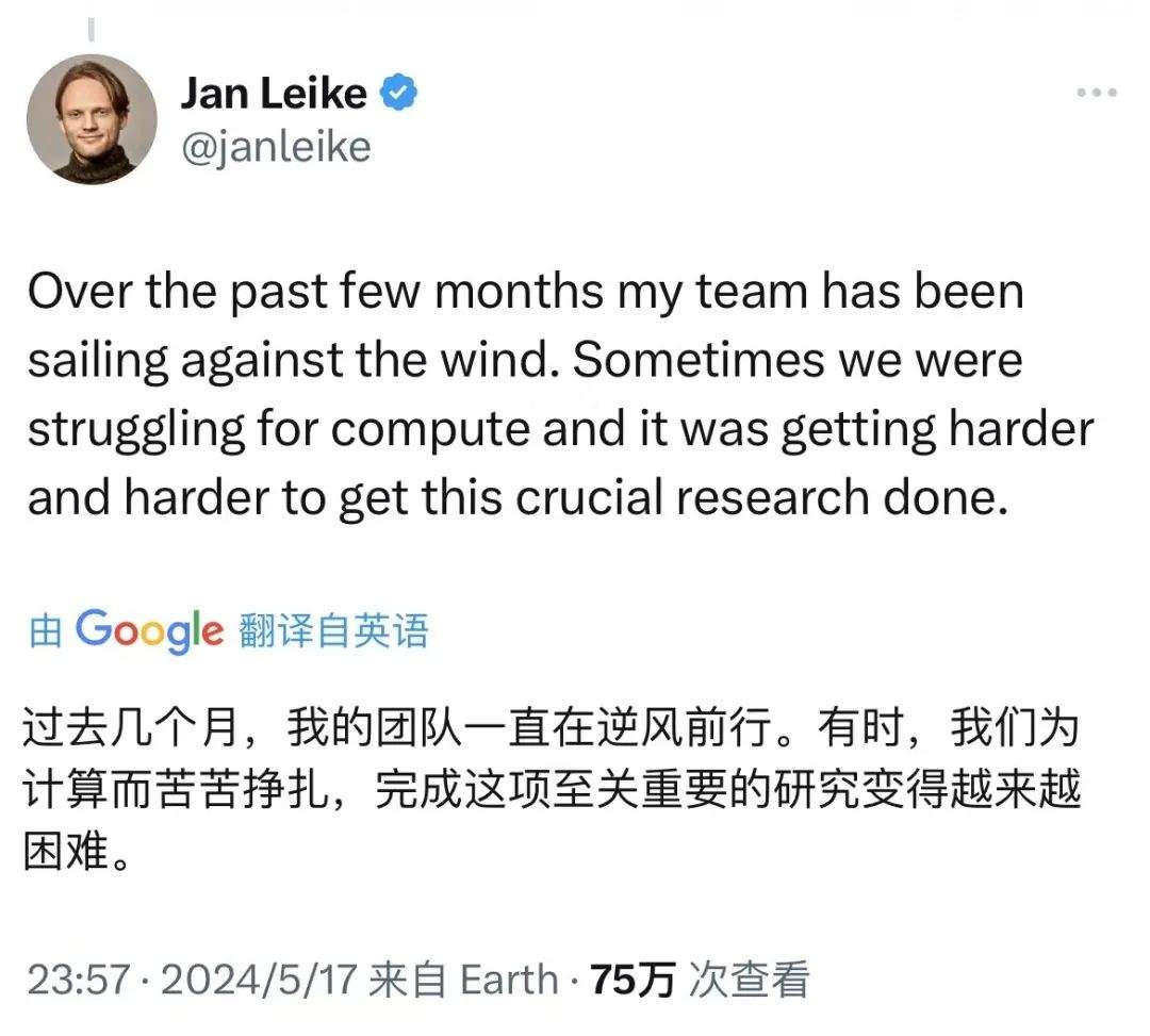但在 Leike 的推文裏,有這麼一句 “we were struggling for commute” ( 我們挺缺算力的 )。
