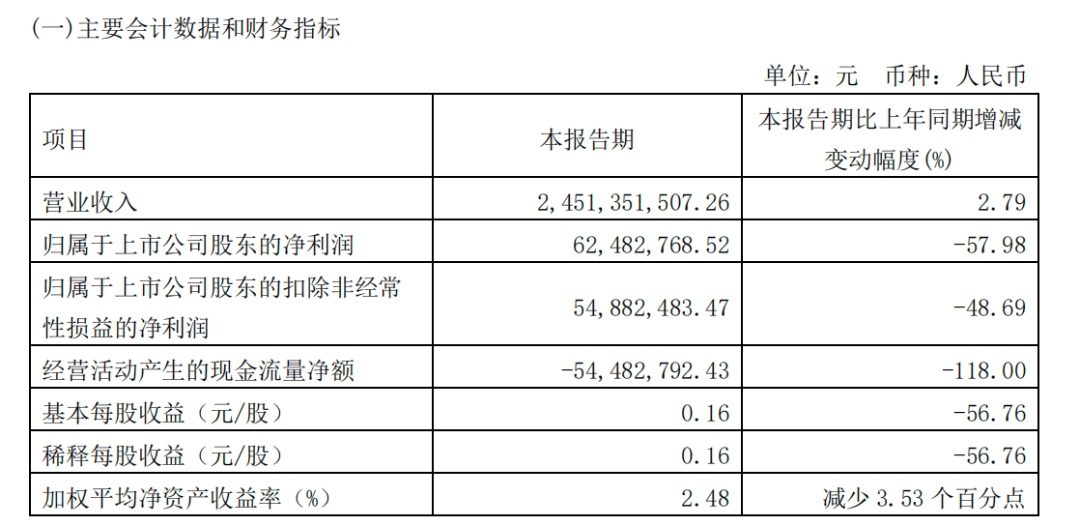 歸母淨利潤為0.62億元,同比下滑了57.98%,扣非淨利潤為0.55億元,同比下滑了48.69%,與此同時,該季度公司的毛利率也同比下降了2.74%至26.43%。