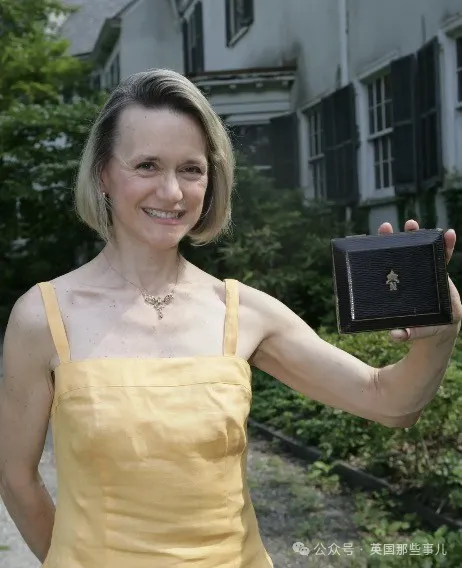 (拉蒂默女士展示保存“拿破崙DD”的盒子)