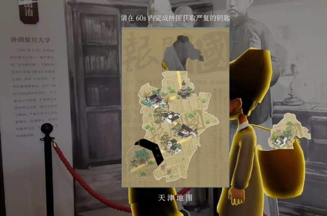 有了可感知、可互動的數字化內容,“嚴復故里元宇宙研學項目”提供了多個場景下的趣味交互:比如將嚴復的生平事蹟製作成“地圖迷蹤”的交互遊戲,參觀者用尋找地圖碎片的方式加深印象;嚴復宣揚維新與社會變革的知識,打造成了3D的海戰沙盤,參觀者可通過答題來擊敗敵方戰艦;嚴復的代表譯著《天演論》,以AR趣味尋書的互動,讓參觀者在“尋找”的過程中深入瞭解。
