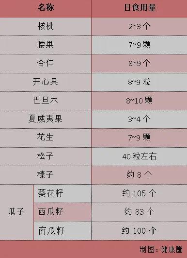 10克約等於多少具體堅果數呢?圈圈在這裏附上一份大致的換算表格。
